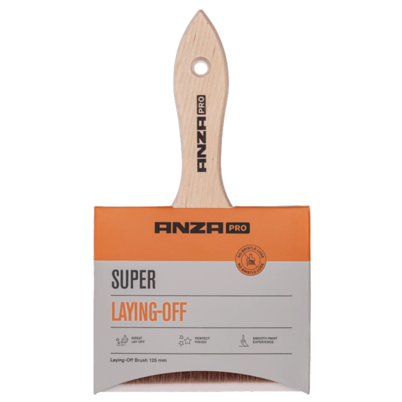 Met hoogwaardige synthetische haren zorgt de Anza Super Laying-Off voor een gelijkmatige verfapplicatie. Het brede en platte oppervlak maakt het mogelijk om in één beweging grote stukken te bedekken, waardoor tijd en moeite worden bespaard.